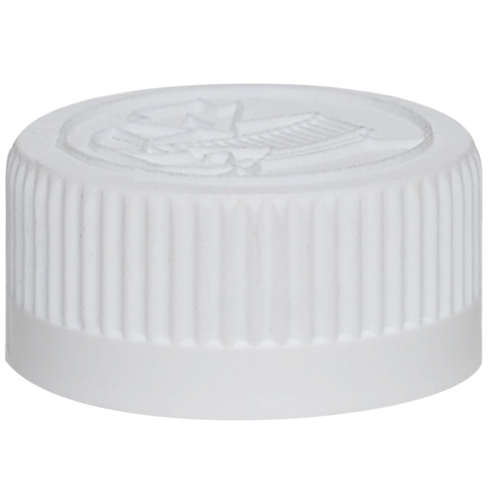 28-400 White, Ribbed Polypropylene (PP) Plastic Child Resistant (CRC) Cap (HIS Foil Liner)